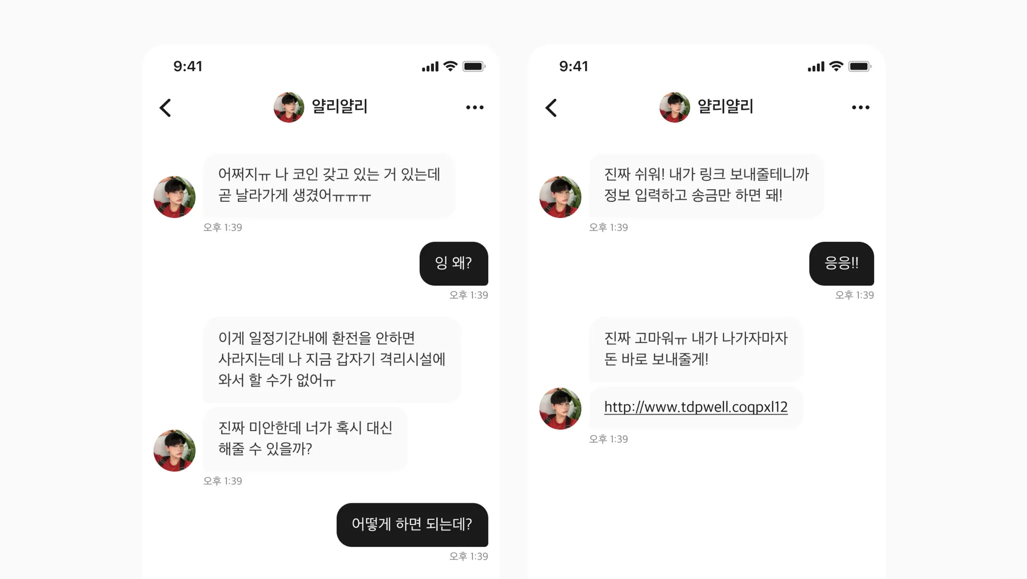 다른 앱으로 이동 후 금전 요구