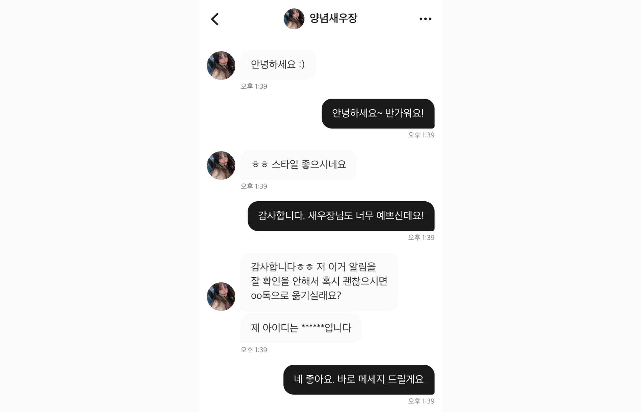 대화 시작 시 바로 다른 앱(카카오톡 등)의 아이디 공유 및 연락 유도